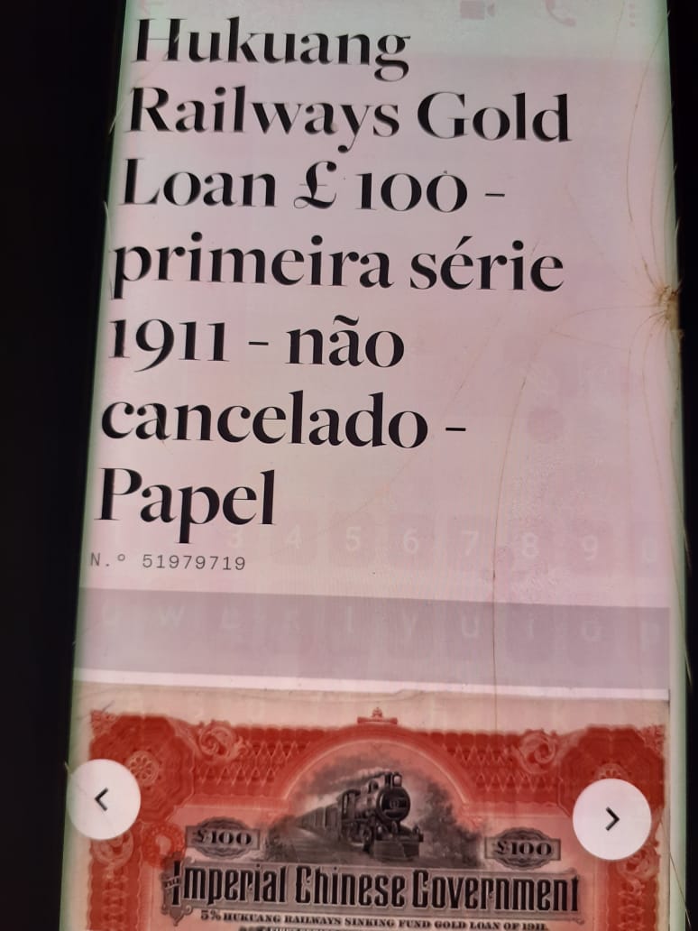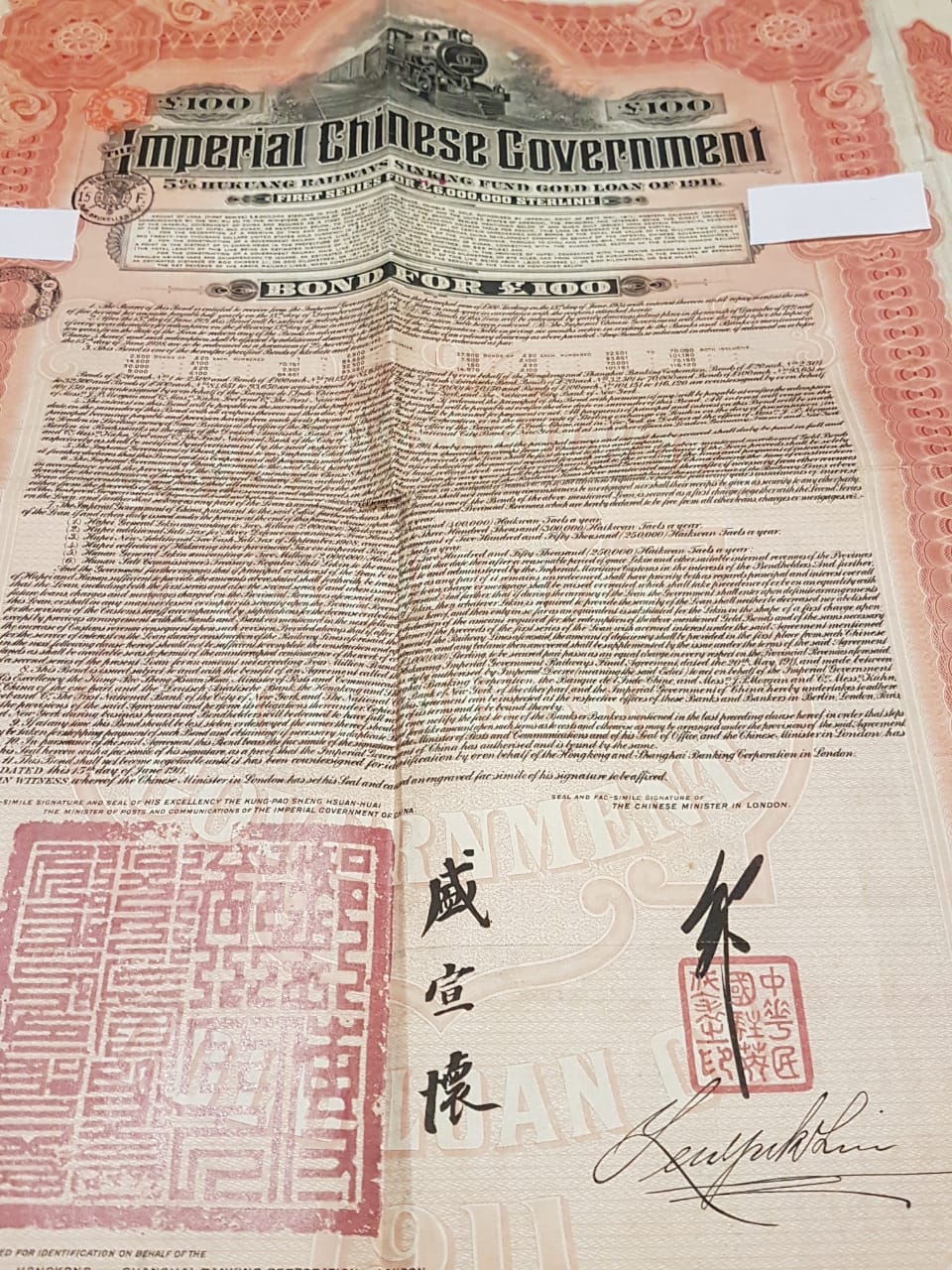 GOLD LOAN CHINÊS - DÍVIDA EM OURO NÃO CANCELADA 100 LIBRAS ANO 1911