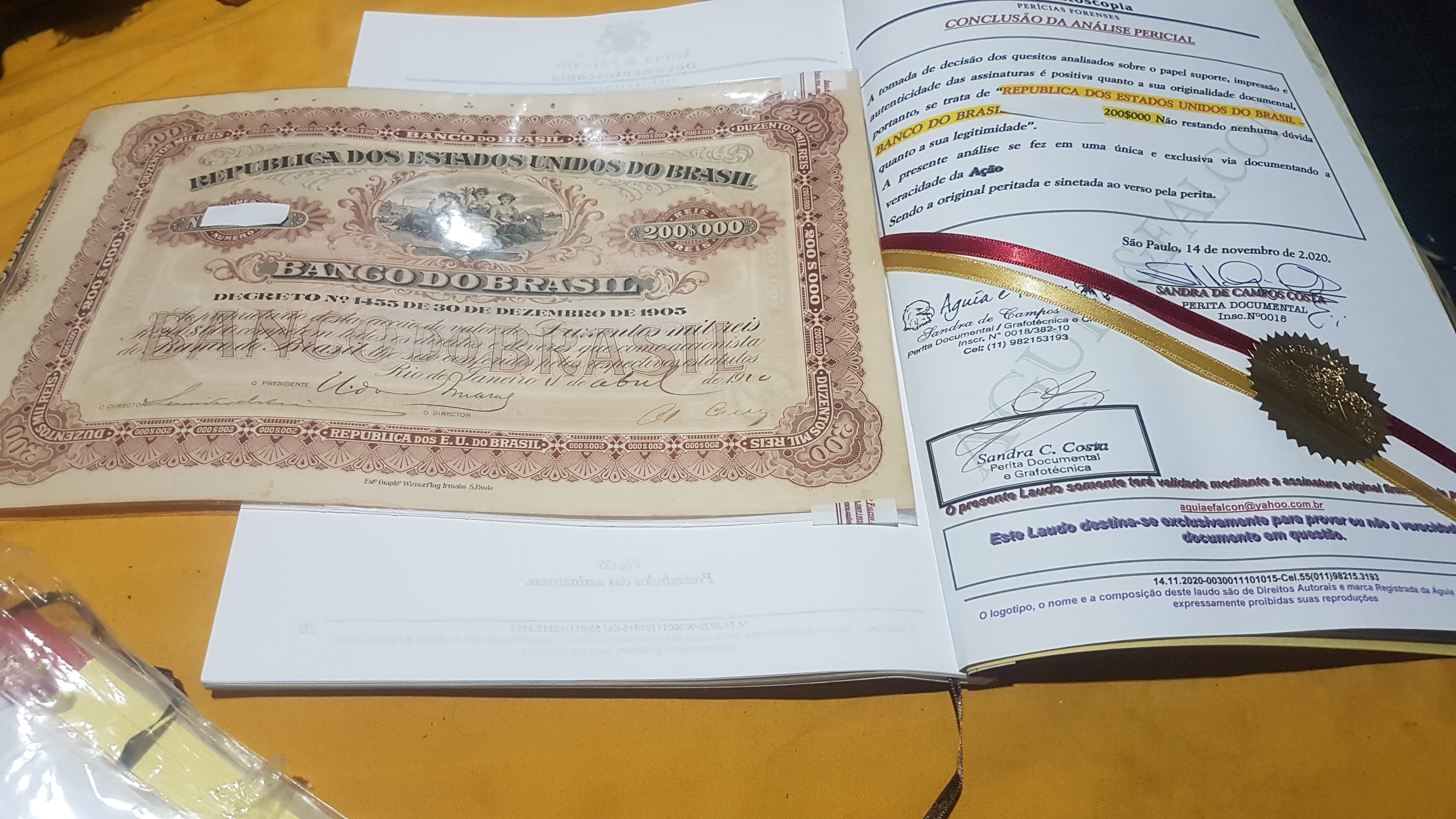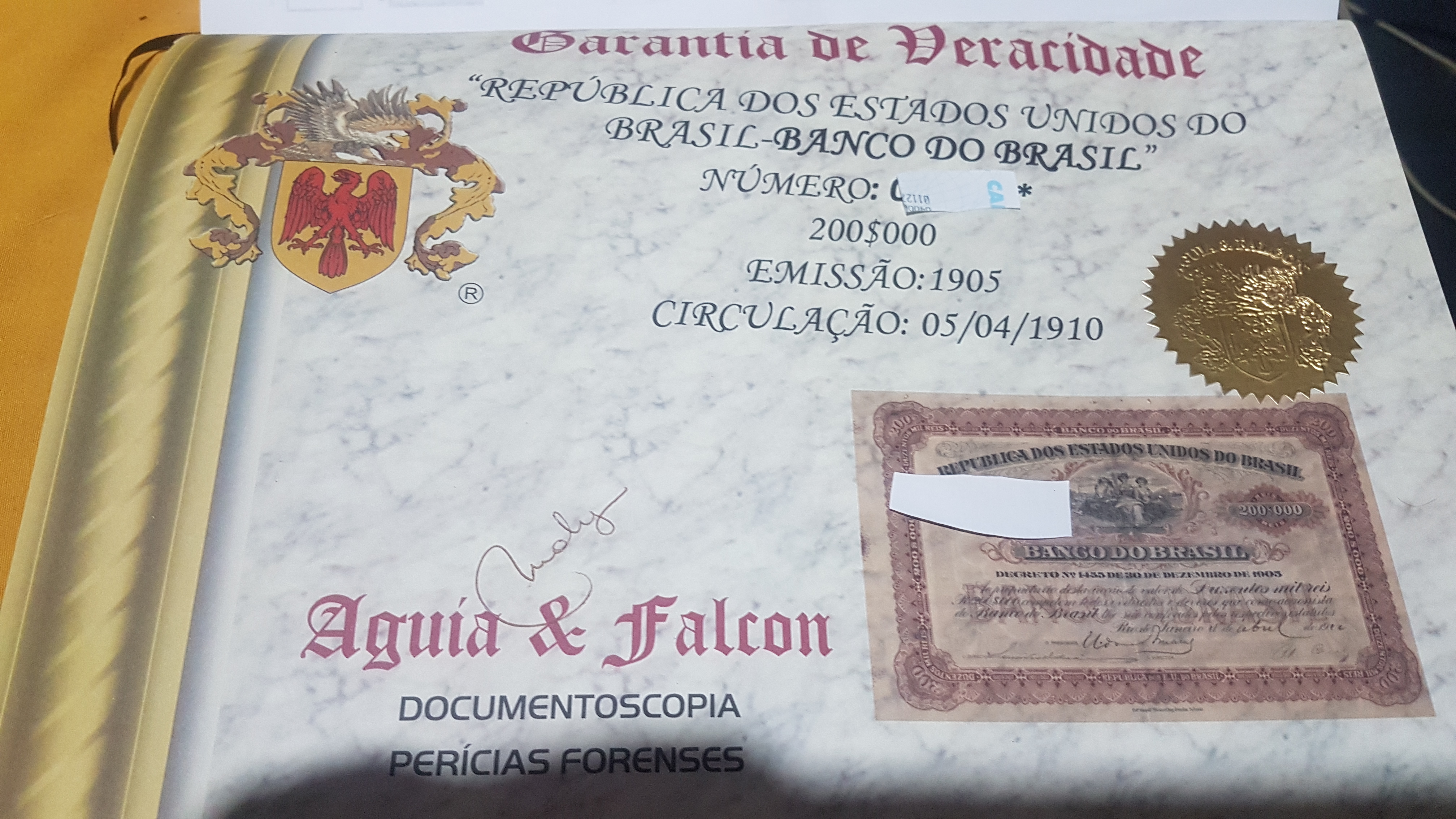 AÇÕES 1910 DE 200$000 RÉIS BANCO DO BRASIL LAUDADA E DE ORIGEM APENAS R$ 6..500,00 MOTIVO SAÚDE