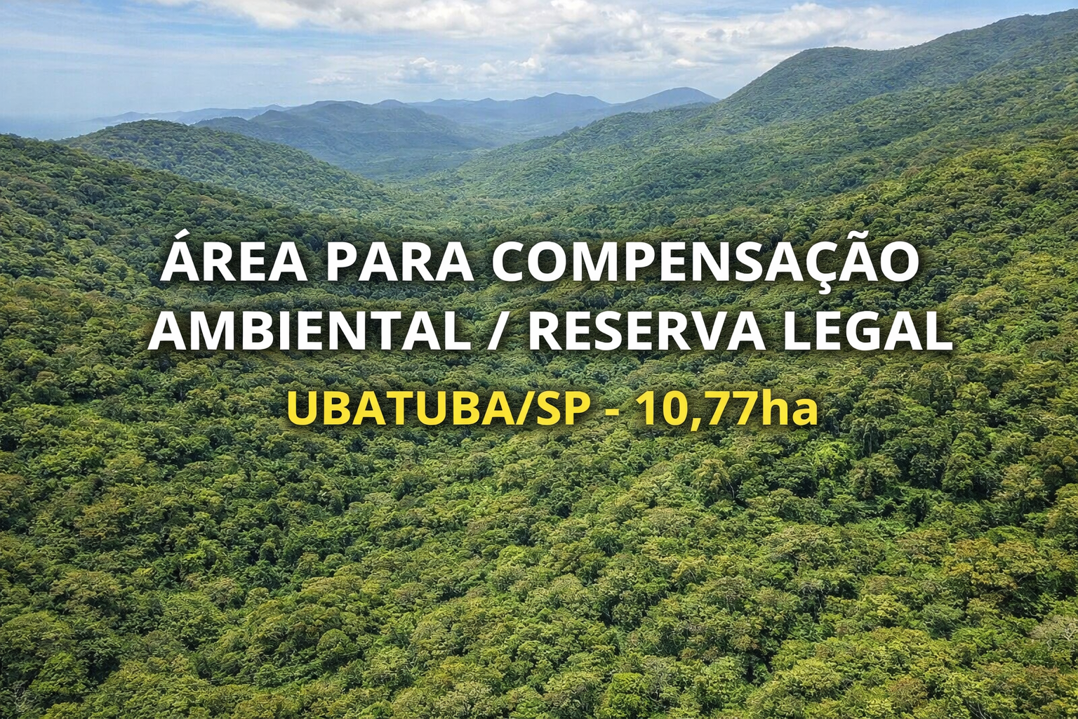 Área localizada no município de Ubatuba/SP, com aproximadamente 10,77 hectares (107.695 m²), com potencial para compensação ambiental, reserva legal, servidão ambiental ou projetos correlatos.