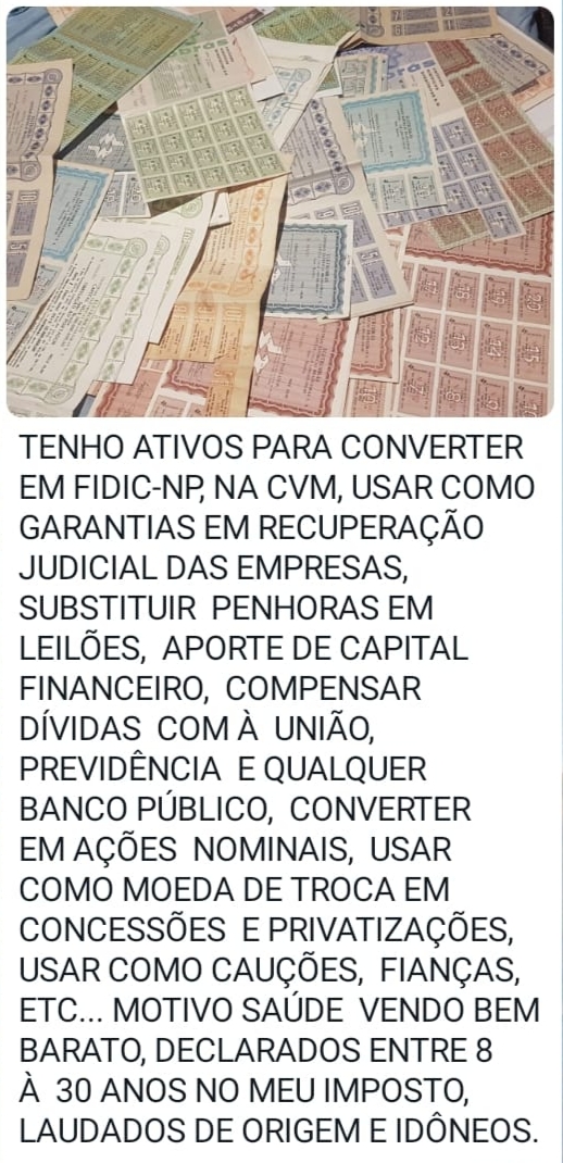 ATIVOS ENORME DESÁGIO PARA LICITAÇÕES, INTEGRALIZAÇÃO, APORTES FINANCEIRO FIANÇAS E CAUÇÕES