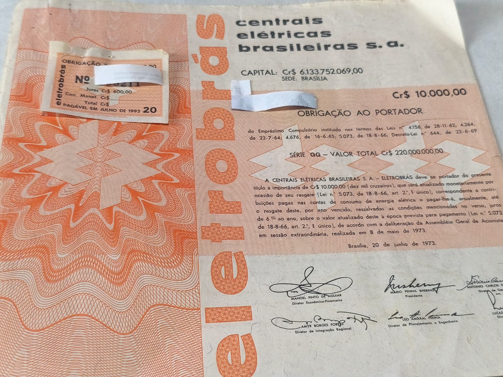 ELETROBRAS RARA SÉRIE - GG, ATUALIZADO RM 1 BILHÃO E QUARENTA MILHÕES DE REAIS , APENAS RS 30 MIL REAIS 011-99999-7935